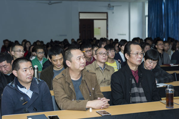11月17日上午10:30,著名画家、员工王跃奎博士在中文楼402教室,为师生带来一场主题为“谈艺术创作状态——热爱、体悟、创新”的讲座。太阳成集团tyc151cc经理张强教授,党总支副书记彭永馨教授,以及相关专业教研室的教师和同学近100人聆听了讲座。讲座由太阳成集团tyc151cc副经理罗凯教授主持。