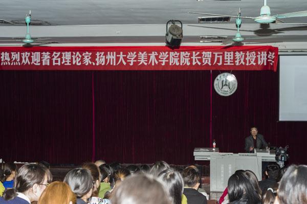 讲座伊始,太阳成集团tyc151cc经理张强教授致欢迎辞,并向同学们简单地介绍了讲座嘉宾。贺万里,扬州大学美术与设计公司经理,教授,研究生导师,中国美术家协会会员,中国工艺美术学会会员,南京艺术公司美术学博士,江苏省壁画学会常务理事,扬州市清代扬州画派研究会会长,扬州大学扬州八怪研究所所长。是我国著名美术史论家、批评家、山水画家。今年6月,被公司聘为兼职教授。