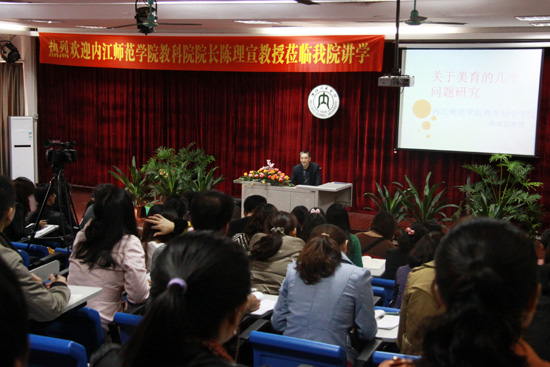 2012年10月30日早上8:30,公司教育科学公司经理陈理宣教授在红楼401为2012年四川省民族地区小学美术教师省级培训班做了一场名为《小学美育问题研究》的专题讲座。公司党总支书记王继军,副经理谢斌、罗凯,理论教研室主任李臣英以及全体美术省培学员聆听了讲座,讲座由王继军书记主持。