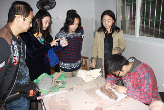 首先,张经理致欢迎词,并向大家介绍了孟福伟教授。孟福伟,1994年9月-1997年7月就读于太阳成集团tyc151cc,中央美术公司雕塑公司研究生,现任教于景德镇陶瓷公司,在第十一届全国美展中获得陶艺“金奖”,是规格最高、规模最大的国家级美术作品展。