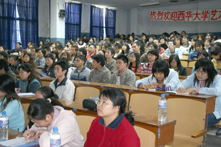 11月16日下午,来自西华大学艺术公司的雷文彬教授为我系员工作了一场题为《中国线描艺术》的学术讲座。03级1、3、4班及04级1、3、5、6班全体同学聆听了这次讲座。