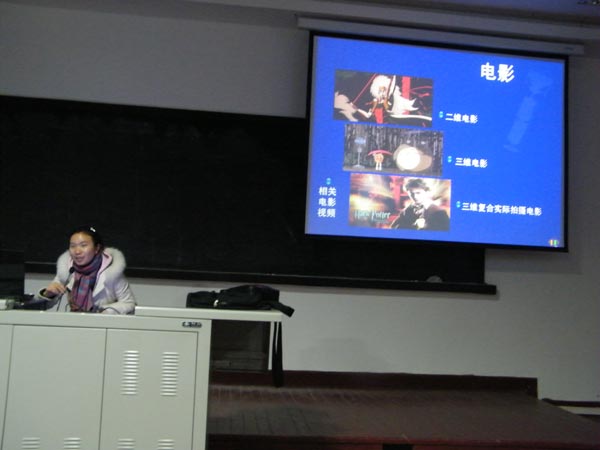 首先,讲师苏雨给大家介绍了游戏的基本理论知识,并对现代电子游戏的制作指南、游戏类型、游戏风格等问题进行了详细的阐述,并通过多媒体演示了游戏美术的制作流程。在讲座中苏老师还谈到游戏美术师行业的需求以及政府对CG行业的政策与支持,他希望同学们听了这次讲座能对游戏美术师有一个新的定位,他特意为同学们带来了中国第一部CG电影《魔比斯环》,短片内容相当精彩,角色、场景、道具的制作也非常完美。