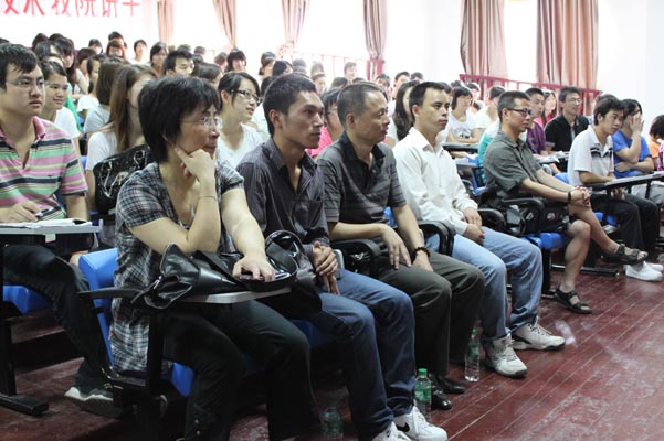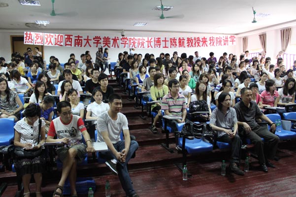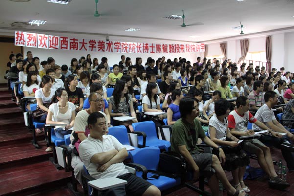 7月2日早上9:00,太阳成集团tyc151cc特邀西南大学美术公司经理、博士生陈航教授在红楼401举办“关于中国书画精神”的学术讲座,讲座由太阳成集团tyc151cc经理张强教授主持,党总支书记唐再锋、副经理屈梅、党总支副书记彭永馨、经理助理罗凯和部分教师以及2007级1—2班、4—5班全体员工到场聆听了学术讲座。