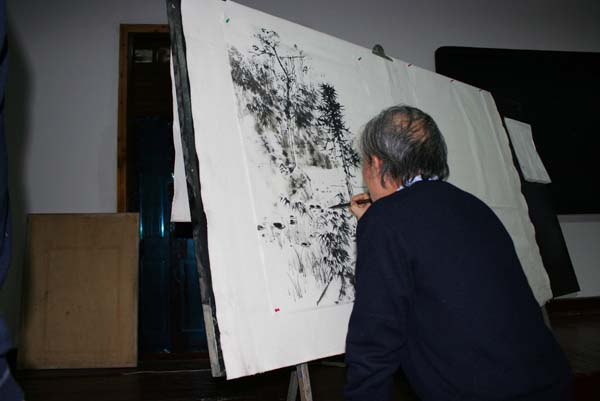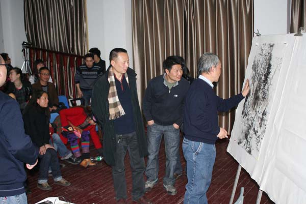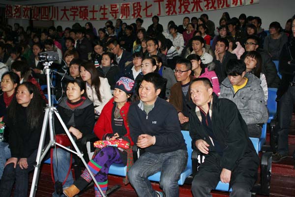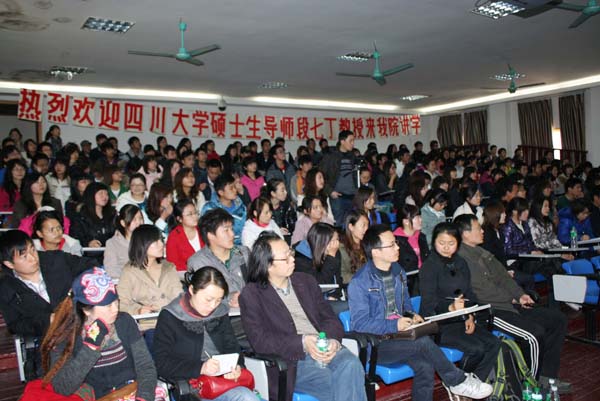 2011年3月16日下午3:00,太阳成集团tyc151cc特邀四川大学硕士生导师段七丁教授在红楼401作了关于“中国画的特色”学术报告。讲座历时长达3个小时,现场座无虚席且鸦雀无声,全体师生都沉醉在段教授精彩的讲座和范画中。