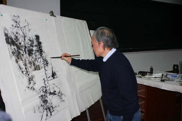 在讲座中,段教授细致入微的讲解了中国画的创作特色和技巧,一一列举了中国画的素描、色彩、透视与西方画的素描、色彩以及透视的异同,并强调了中国画的意蕴性和艺术性、中国画的分类以及工笔和写意之间的界限等。在讲座中段教授旁征博引、谈古论今,给我们展示了中国画的博大精深,使我们对国画有了更高和更深刻的认识。