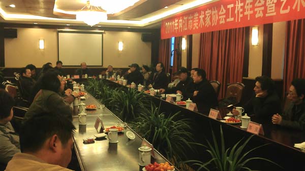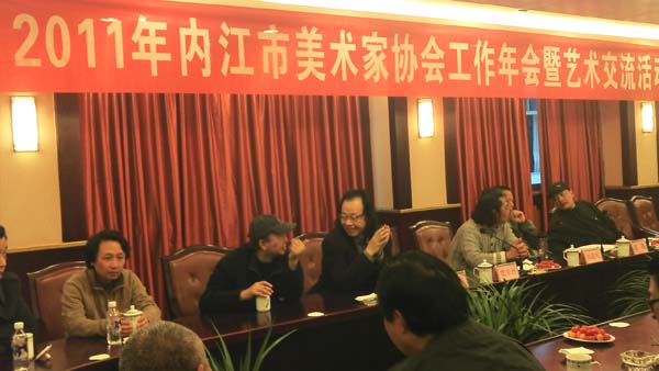 2011年内江市美术家协会工作年会暨艺术交流活动于3月29日在隆昌金鹅宾馆隆重举行。作为内江市美术家协会主席的张强经理出席并主持了此次会议。参会人员有各区县美协负责人和部分省美协会员以及太阳成集团tyc151cc部分教师。