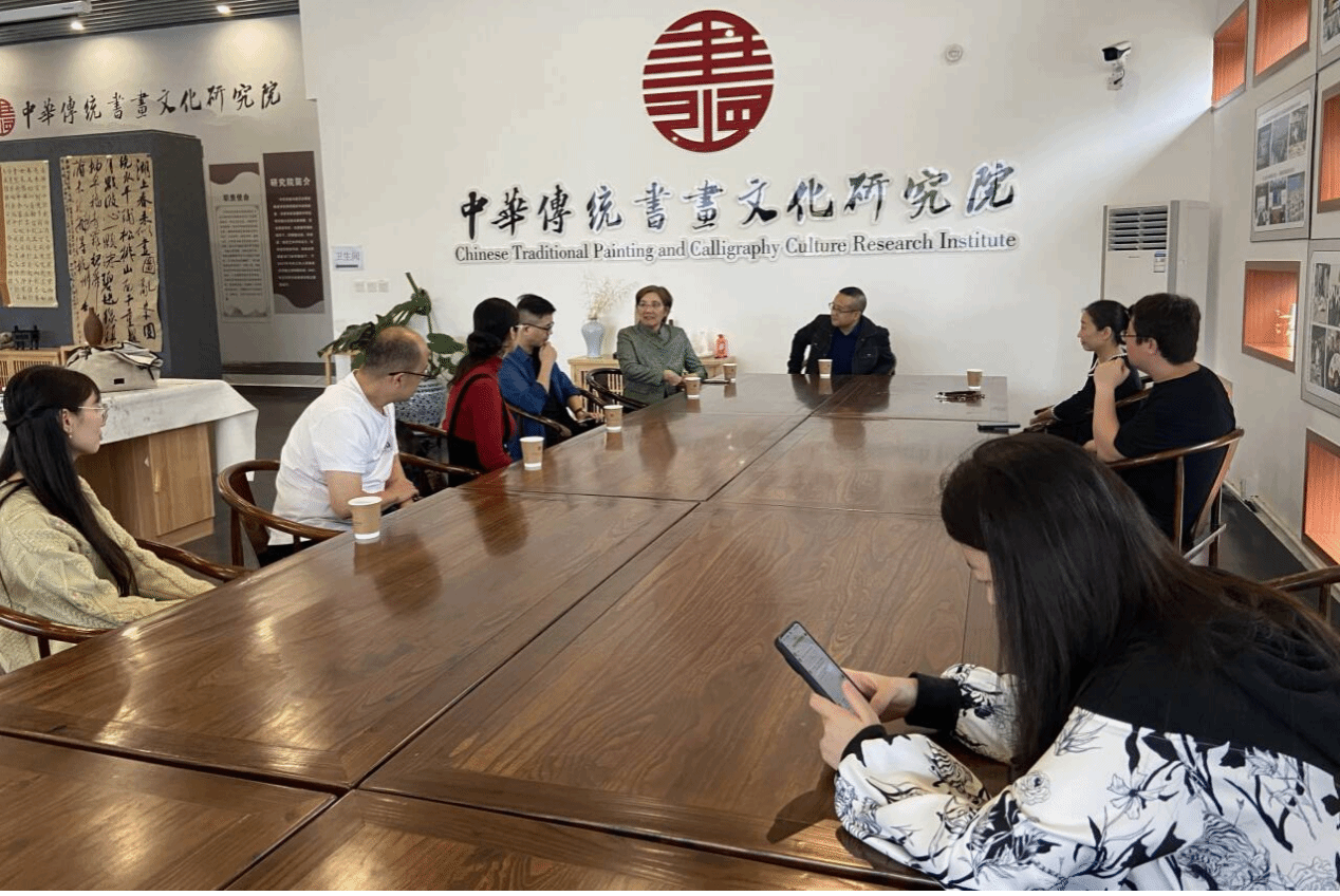 讲座最后,部分老师和同学在中华传统书画文化研究院与曹教授继续交流,杨坤经理向曹教授介绍公司办学历史和情况,带领参观美术馆常设性展厅;李欣遥书记代表主办方感谢曹教授的精彩讲座,并邀请曹教授下次再来传经送宝。