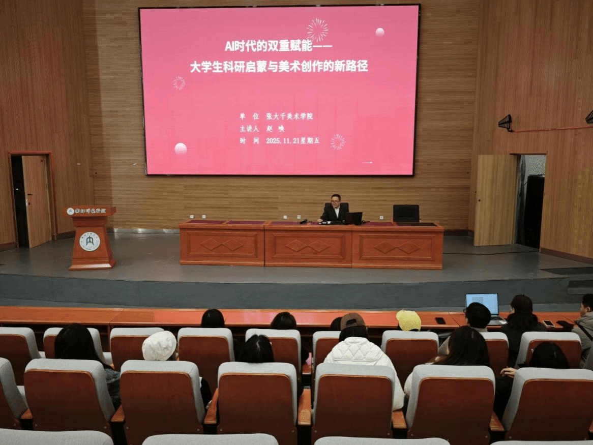 11月14日上午,太阳成集团tyc151cc赵唤博士在美术馆101报告厅,举办《AI时代的双重赋能:老员工科研启蒙与美术创作的新路径》专题讲座。
