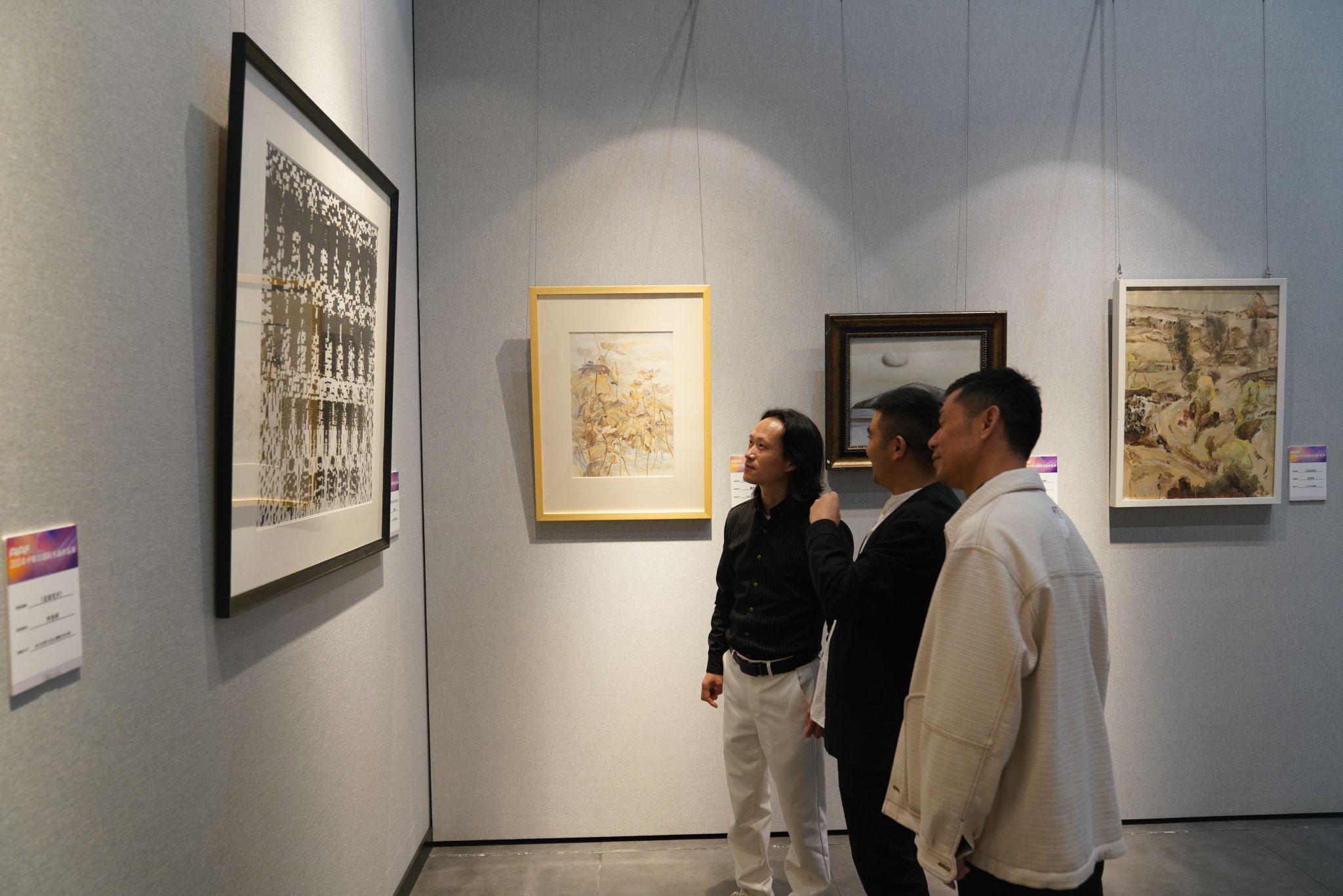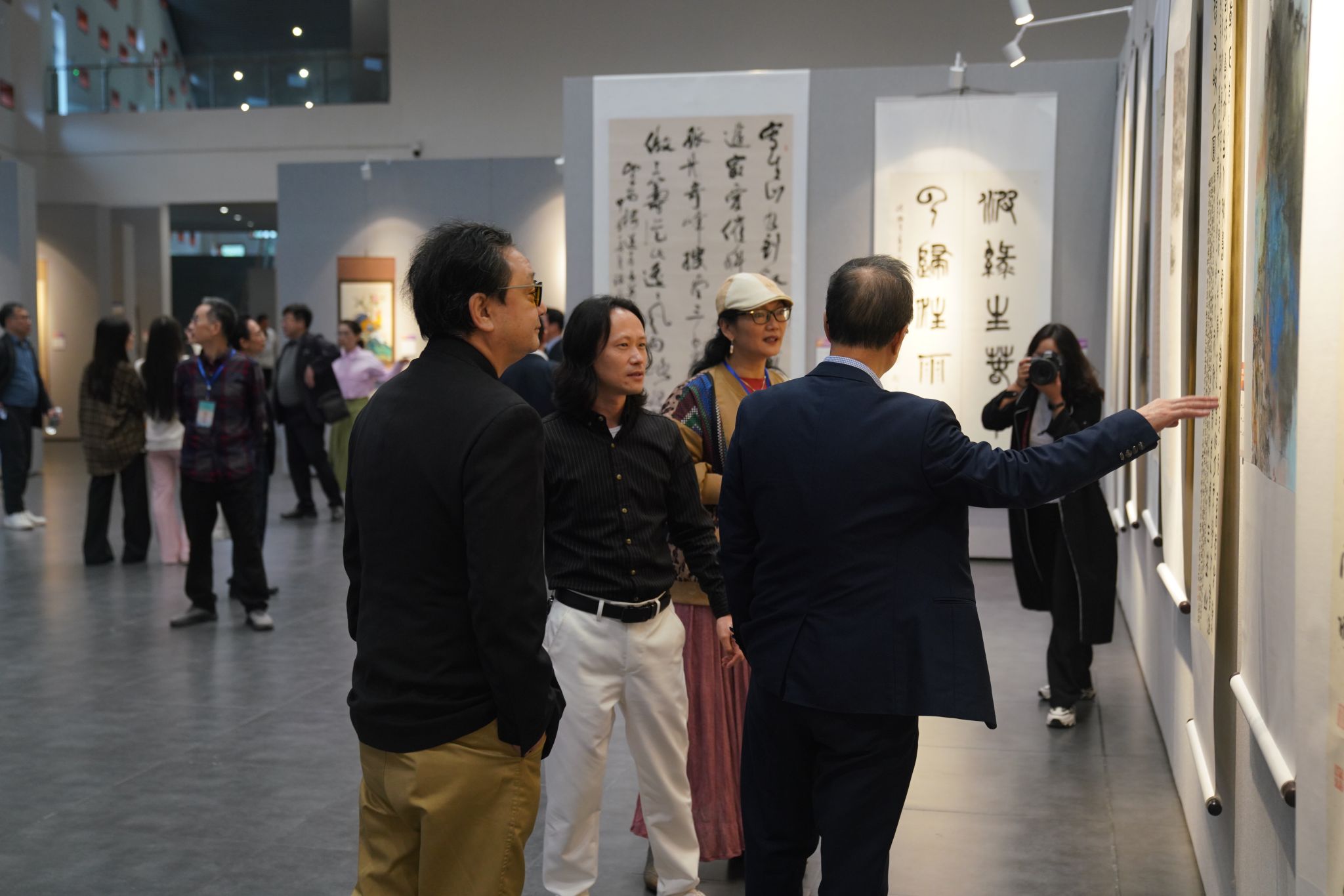 开幕式后,与会嘉宾前往展厅欣赏画展。本次活动展出的300余幅作品涵盖了传统书画艺术中的山水、花鸟、人物等多种经典题材,中国水墨画的笔墨情趣、韩国画的淡雅自然、日本画的精致细腻,一幅幅精美的作品展现了艺术家们对传统书画文化的深刻理解和独特表达。参观者们在作品前驻足停留、品鉴分享,在书香墨韵中感受传统书画文化作品的魅力。