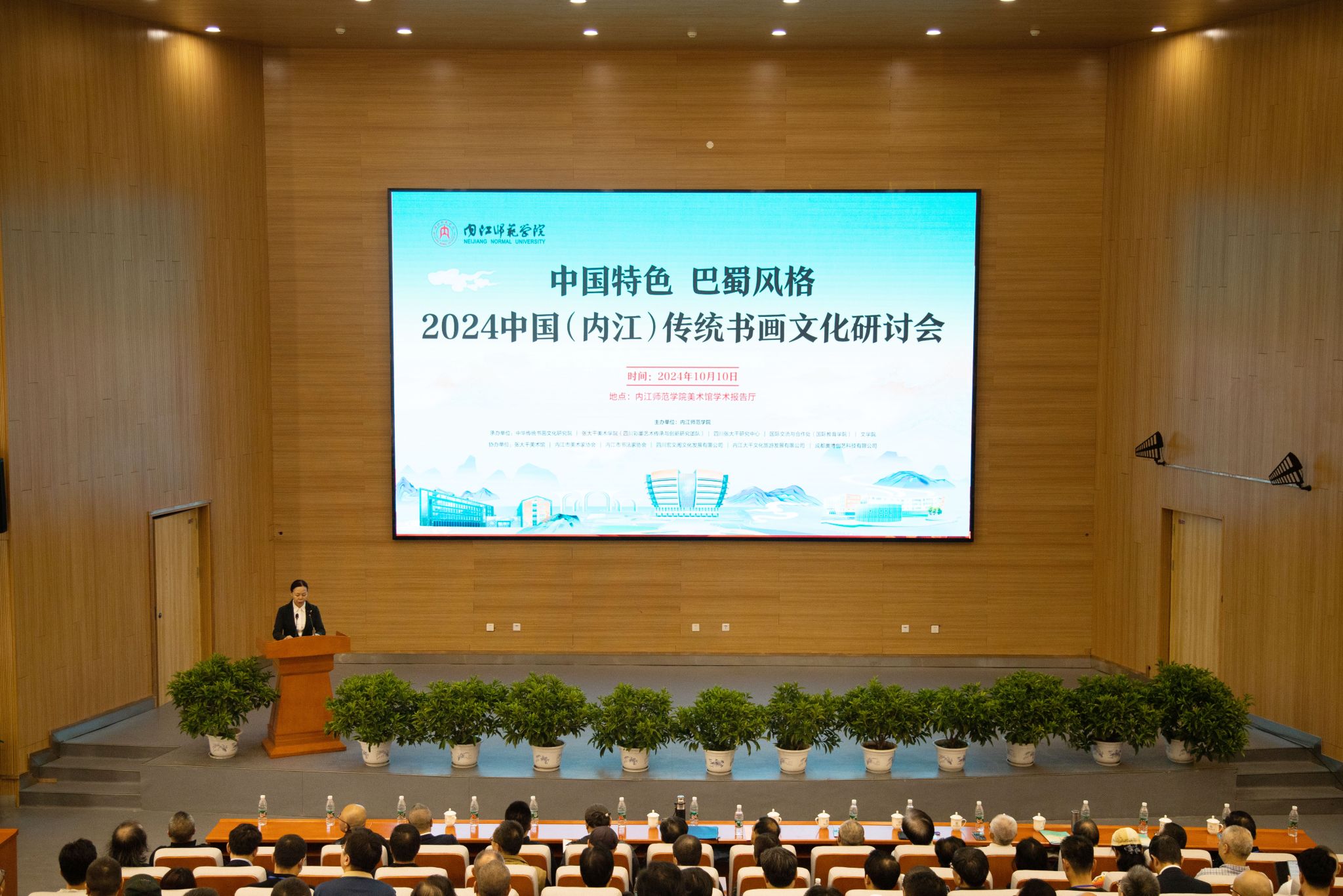 10 月 10 日上午,2024 中国(内江)传统书画文化研讨会暨 2024 中韩日国际书画作品展在公司美术馆举行。来自海内外的 100 多位专家学者和艺术家们齐聚于此,共同探讨传统书画文化的学术前沿,交流经验,分享研究成果。
