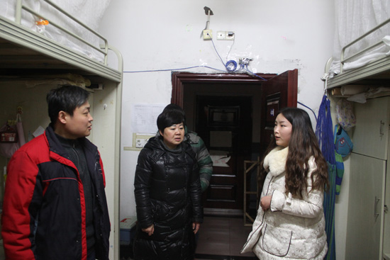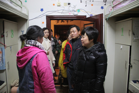 同时,公司对留校员工反映的部分问题进行了认真梳理并给相关部门做了沟通协调,晚上八点彭书记又带领全体辅导员、班主任和部分员工干部到留校员工宿舍进行了安全隐患的拉网式排查,对存在的安全隐患及时指出并现场进行整改,并耐心教育员工安全无小事,一定要时刻绷紧安全这根弦,看到许多员工宿舍晚上不关门的情况,彭书记对假耐心告诫他们一定要关好门窗,防治不法分子闯入。针对有些同学没有办理留校手续的同学,彭书记现场为他们办理了相关留校手续,并再三要求他们一定要玩出早归,遵守宿舍纪律,注意自己的人身财产安全。