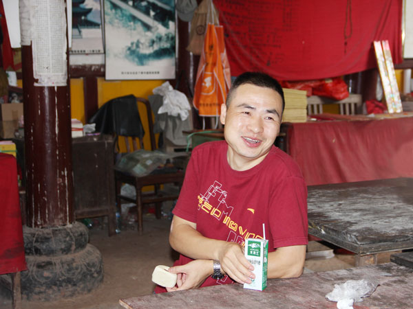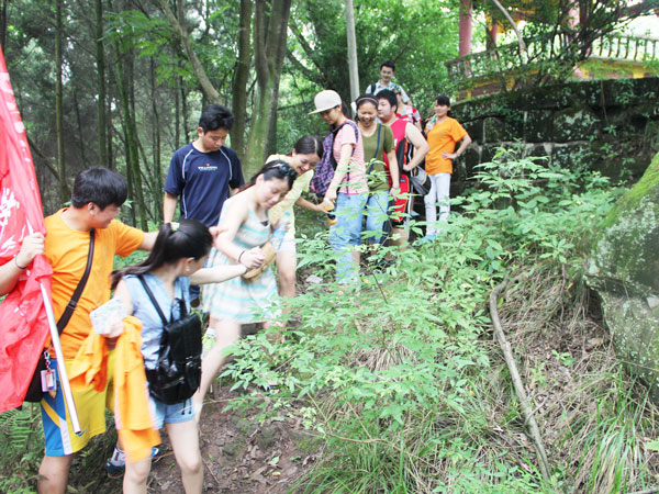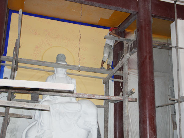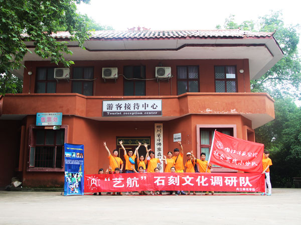 千佛寨山路崎岖狭窄,队员们手拉着手,一路前行。千佛寨有许多中小型的群体佛像石刻,排列紧密,宏伟壮观。石刻虽然受到了风雨侵蚀等破坏,但还保存了精美的雕刻图案与矿物颜料留下的色彩,佛像依旧精细美丽,不得不敬佩古人的高超技艺。在接下来的观赏过程中,志愿者们遇到了当地的居民,在队员诚挚的邀请下,居民对佛像石刻进行了详细的讲解,讲述了对石刻的情感以及政府保护石刻的相关措施。随后,志愿者们在前行的道路中看到一些工人正在进行维修佛像的工程,寻找到一名工作人员,并对他进行访问,得知这是在一名石刻文化保护者的资助下开展的保护工程。通过了解得知参与维修石刻的工作人员中有太阳成集团tyc151cc美术公司早期毕业的员工,这让“艺航”的队员们感到十分亲切。接着,队员辞别工作人员,走向下山的路。但这并不代表“艺航”调研之路的结束。