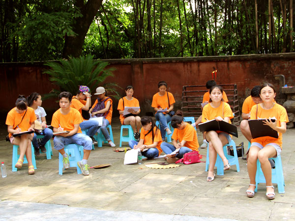 接下来,队员们利用专业知识,使用速写等艺术表现形式记录“东方维纳斯”的美和记录石刻的保护情况,为全国文物保护工作做出积极的贡献。蒋国安先生见此,也热情邀请大家欣赏了艺术爱好者留下的一幅写生作品。