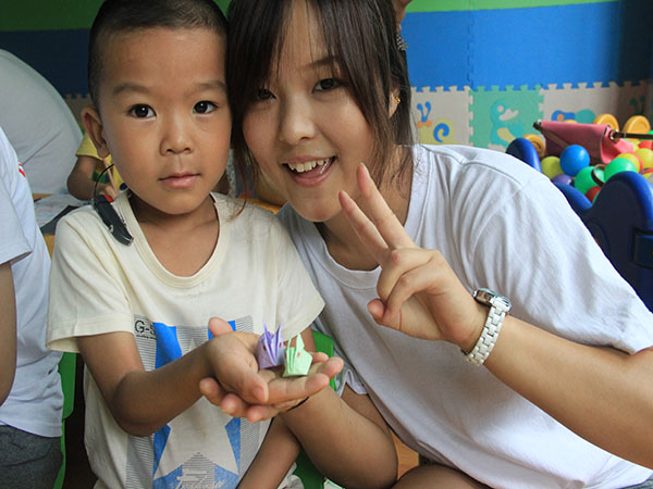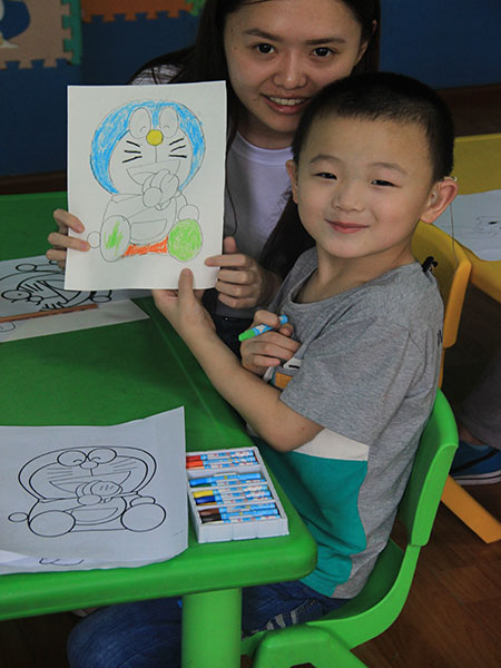 开幕仪式后,同学们对这些特殊的小朋友进行了绘画上一对一的辅导。很快,同学们很快取得了小朋友们的信任,虽然不能用语言来表达,但他们用行动告诉我们内心的愉悦以及对志愿者们的喜爱。由于孩子们都有一定的语言与听力障碍,志愿者们准备了一些简单的课程对小朋友们进行辅导教育,主要是锻炼他们的动手能力和审美能力。通过接触大家深深的体会到了他们的不易与艰辛,但是小朋友们开朗活泼的性格让大家深为感动。