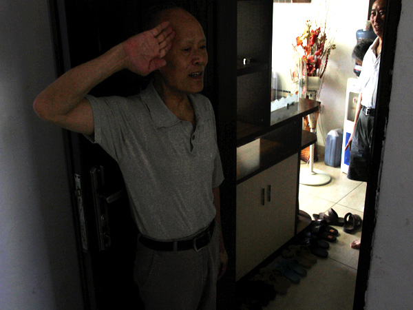 11点30分,结束了拜访。在我们与老人家握手离别时,两位老人家更是英姿不减当年,用一个标准的军礼送我们离开并对我们的看望和关心表示感谢。