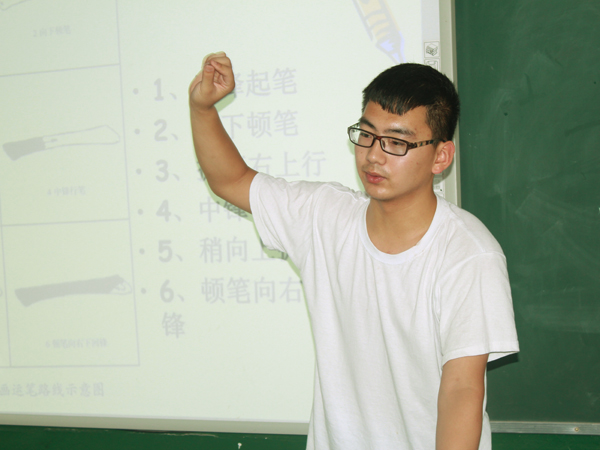 支教时间虽已过半,但是志愿者和孩子们的热情却似这七月艳阳天般炽烈。经过前几日的酷热,今天终于迎来了清凉。早上,部分志愿者与早到的孩子们在教室做起了趣味小游戏,为即将开始的课程做好积极的热身准备。剩余部分志愿者则对孩子们的日记进行了认真批阅,将日记中的病句与错别字一一指出与改正。与往常一样,课程在八点三十分开始了。小班主讲麻璐对她精心准备的折纸手工课程进行了讲解。针对孩子们喜欢动手的特点,麻璐事先精心准备了彩色卡纸,并本着从易到难的方法,耐心细致地教会了孩子们“恐龙、相扑选手”等复杂的折纸。对于折纸课程,孩子们都抱以了极高的热情并在过程中相互帮助,就连前几日出现抵触情绪的万健小朋友也认真地动起手来。与此同时,大班主讲卢巍科则对毛笔字的笔法和字法进行了教学,针对孩子们的受教程度,合理地从简单的执笔姿势开始讲解,并逐步深入到“横竖撇拉勾”的基本用笔技巧。在讲解过程中,卢巍科严格以待,着重对孩子们坐姿及执笔姿势进行纠正,使孩子们在体会毛笔字的博大精深的同时培养了书法的良好习惯。