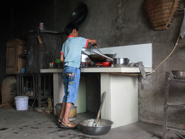 下午,为了更好地了解留守儿童的家庭情况,志愿者对其中一位留守儿童进行了家访。该名留守儿童因父母常年早出晚归,在三十公里外的县城务工,家中无老人,年仅十岁就独自承担起家务。在结束了一天的绘画课程后,志愿者们陪伴着该名留守儿童返回距离公司需半小时路程的家中。孩子到家后便开始准备自己的晚餐,身高虽然没有灶台高,但是踮起脚尖熟练做饭的背影,足以感动着在场的志愿者。志愿者们纷纷表示这次真正理解了——“农村的孩子早当家”这句话。