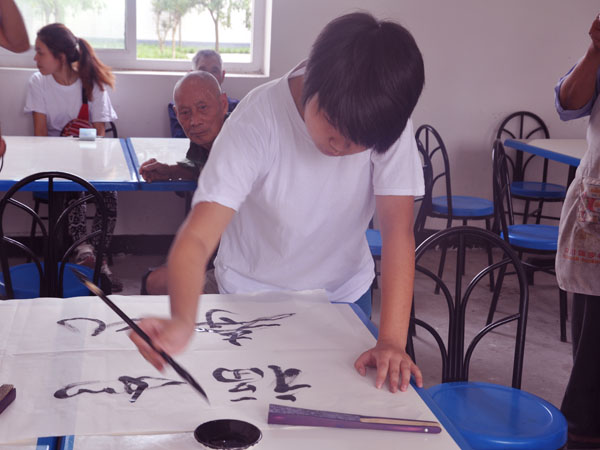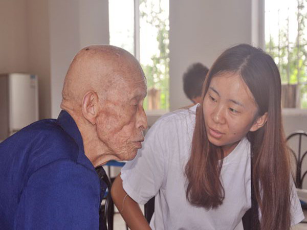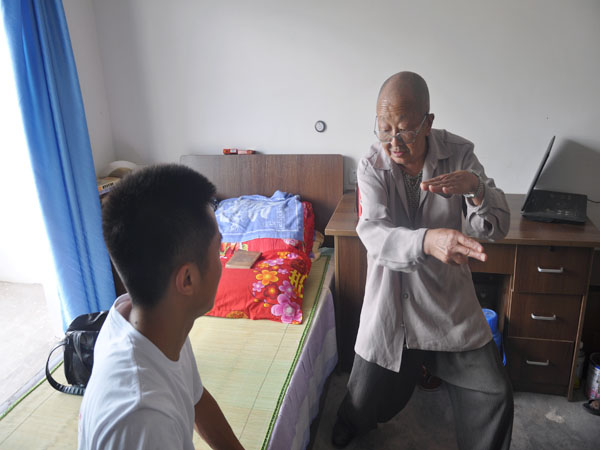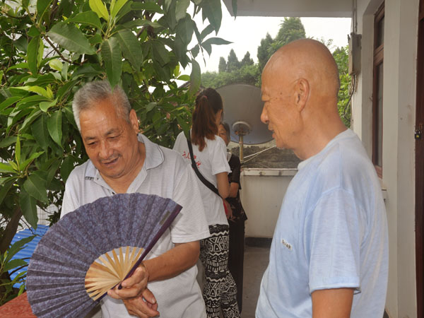 在敬老院里,我们的志愿者们按照昨晚上的分工安排,有的和老人们聊天、有的为老人锤背、有的为老人剪指甲……做着一些我们力所能及的事。在聊天中,一位老爷爷向我们讲述了他年轻时的故事,他是一位老军人,已87高龄,可精神抖擞,聊起他年轻时候的故事时激动万分,更向我们展示了他年轻时打仗受过的伤,看到这一幕,志愿者们肃然起敬。随后,老爷爷还给我们表演了川剧和“永春拳”,表演结束时,志愿者们用热烈的掌声向老人家表达了感谢和敬意。