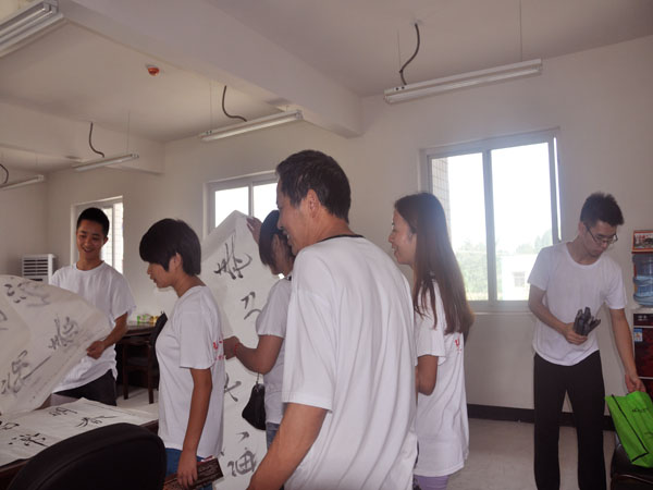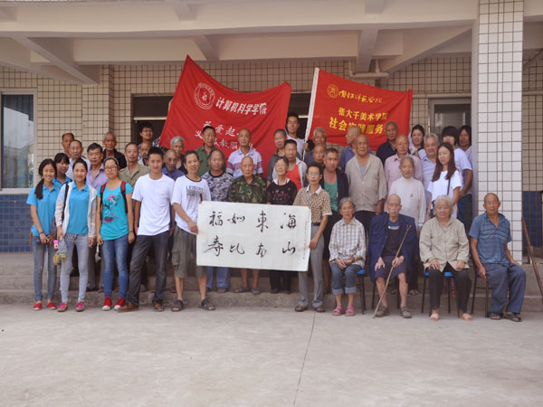 最后,我们向老人们赠送了慰问品。我们带来的慰问品有扇子、拖鞋、毛巾等,志愿者姜越在赠送的扇子上为老人们写下了祝福语—“万寿无疆,福如东海,寿比南山,”祝愿敬老院的老人们身体健康,生活愉快,每天开心!