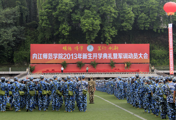 2013年9月2日,2013级新生军训在山顶球场正式拉开帷幕。