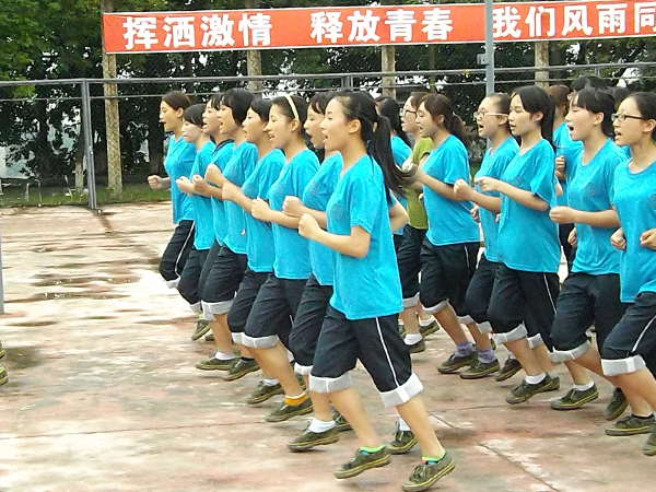 然而,在严肃、庄重的军训场地上也不乏快乐,在有限的休息时间里,经常会看到两个连的同学面对面坐着,进行拉歌、对歌等活动,不时爆发出一阵阵的笑声,精彩的节目为大家的军训生活涂上了一抹亮色,这时平时严肃古板的教官也会讲笑话、对歌,让同学们明白了在以后的人生旅途中无论遇到了什么艰辛,也要积极向上。