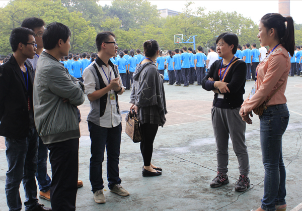 秋风飒爽,丹桂飘香,凉爽多云的天气为新生们的训练提供了舒适的天气,让山顶球场的同学们显得活力十足。9月9日早上10:30,公司党总支副书记彭永馨,团总支书记李仰锐,学工办辅导员蒋明芳和刘津辰老师带领团总支员工会部分成员来到军训现场慰问新生。依例,每天小型练习成果军训表演场上,整齐的方队,饱满的精神,矫健的步伐、准确的口令、嘹亮的声音搏得了慰问领导和老师的声声称赞。