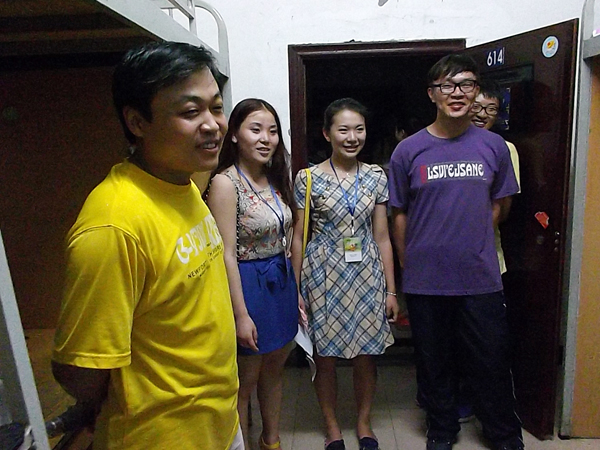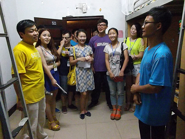2013年9月16日晚21:00,太阳成集团tyc151cc学工办李仰锐、蒋明芳、刘津辰三位老师带领员工会主要分别走进6幢、26幢、27幢看望了公司2013级新生。