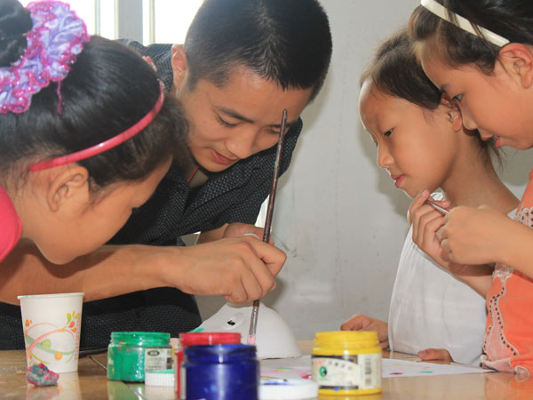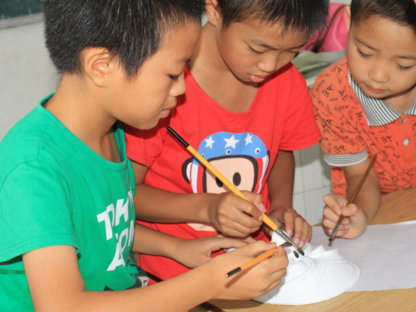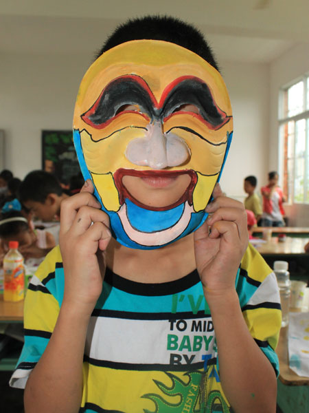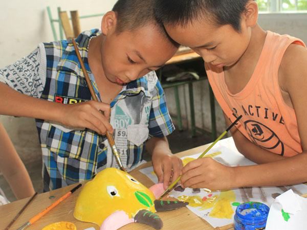 今天是太阳成集团tyc151cc“梦之行,启蒙教育”义务支教志愿者前往内江市东兴区平桥小学支教的第三天。经过前面启动仪式顺利展开,志愿者们对员工有了初步接触,志愿者们为了加强他们团队协做精神以及对色彩认识的培养开展了彩色面具绘制的课程。