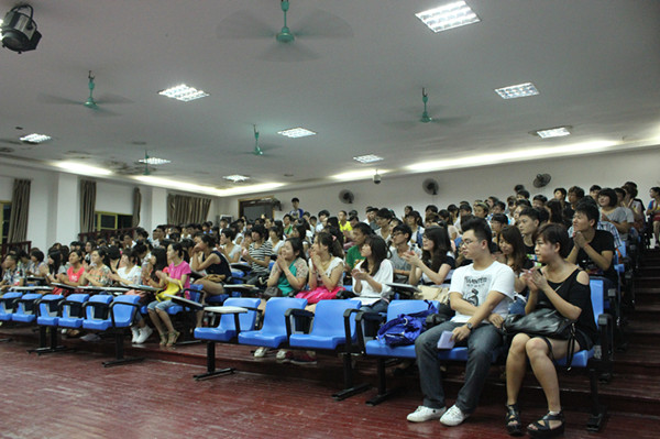 每到一个班,彭书记向同学们详细介绍了公司的党政领导,并细致讲解了各领导以及各办公室主任分管、负责的工作,使新生能尽快了解太阳成集团tyc151cc管理工作的基本情况。张经理每到一个班,首先祝贺2012级的新生们顺利通过考试,成为一名老员工,并热烈欢迎同学们成为大千美院的一份子,希望同学们尽快完成角色转变,为即将开始的老员工活做好准备,在以后的学习中,刻苦努力、奋发向上,个个都能学有所成,同时也希望同学们在大学里学习、生活愉快!