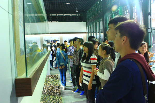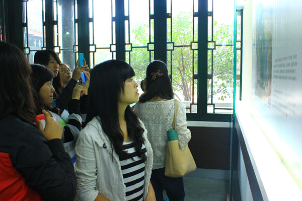 早上8点30分,公司12级新生们早早就在美术楼前集合完毕。集合完毕后,在学工办主任李仰锐,12级各班班主任的带领下,同学们排队、有序来到张大千纪念馆,亲临参观了张大千纪念馆。同学们仔细参观了纪念馆的三个展览厅:“棠棣联辉”,“大风堂”, “艺坛宗师”中陈列的照片、张大千先生的国画作品、诗词作品及张大千先生所用过的笔、墨、纸、砚、印章等物品。