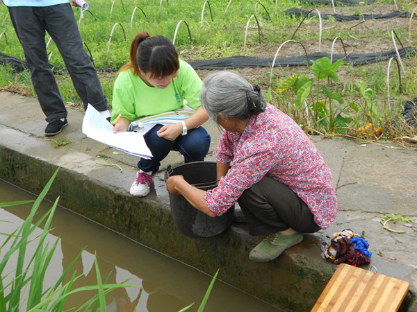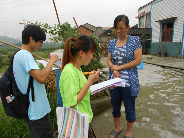 今天,我们农村环境调研组在早上7:00就出发了。我们组今天兵分两路,第一小队以马贵娟为队长,带领大家到白马镇水心坝开展调研。由于昨晚下了大雨,小路变得泥泞不堪,我们踏着坑坑洼洼的泥路,艰难行进。调研时,由于大部分村民不识字,在做问卷调查时有一定的困难,但我们的志愿者不气馁,详细讲解问卷调查内容,并填写,耐心的给他们宣传环保知识。在志愿者的耐心讲解下,村民们都很热心的回答了我们的问题。他们普遍反映由于交通不便,联系外界的只有一个渡口,因此经济发展较落后,环境保护意识也相对薄弱,村子几乎没有采取任何的防治措施。