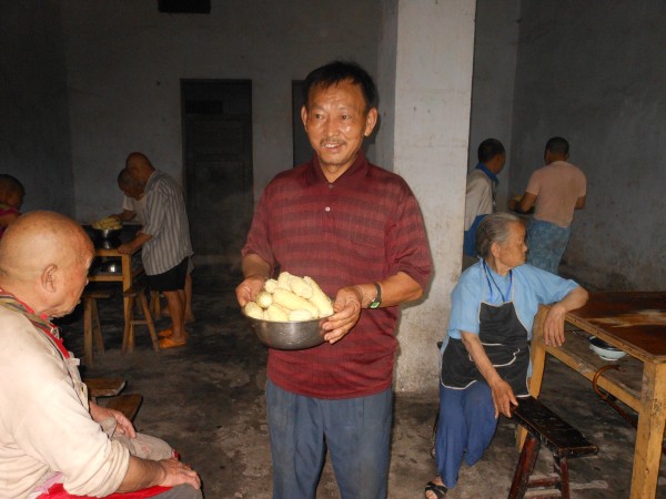最让队员感动的是,这里的老人很尊重大家的劳动,言语中透露着感激。特别是今天还煮了很多玉米犒劳志愿者。最可敬的是这些玉米都是院里还能劳动的老人们种的。玉米有点小个,还有点嫩,可能老人们已经迫不及待想表达他们心中那份无以言表的谢意,早早把玉米煮了和大家一起分享。志愿者和老人们吃着、笑着,今天一早的劳累在笑容中烟消云散。
