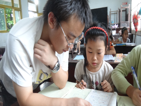 到达小学后,依旧是每一位志愿者在自己负责的班级进行暑期作业辅导。