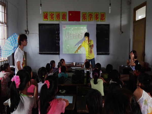 11点钟,志愿者进行“安全知识讲解”活动。首先向小员工们放映关于安全知识讲解的课件,通过这种形式多样、变化灵活的授课方式,让小员工们主动地去接受和学习安全知识,同时在讲课过程中志愿者积极地与小员工们进行互动,通过让小员工们朗读课件上的内容、询问小员工课件上图片的含义、用斑马的条纹来引导小员工们理解斑马线的意思等。