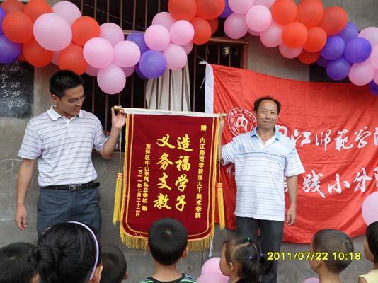 “建党九十周年 爱心义务支教”暑期社会实践小分队在内江市东兴区东风小学开展了为期15天丰富多彩的义务支教活动,在支教期间,实践队员们利用自身所学的专业知识积极开展各项活动,进行党知识的宣传、爱国主义教育、走访红色足迹、困难帮扶、爱心家访、义务家教、慰问老党员等一系列暑期社会实践活动,在短短十几天的实践活动中,队员们顶烈日、冒酷暑、每天来回将近5个小时的路程,虽然队员们格外疲惫。但队员们选择了坚持。他们把公司老员工吃苦耐劳的品质、积极向上的风貌、无私奉献的精神带到了社会。队员们辛勤的努力和付出得到公司领导、东风村员工家长、老师和员工的充分肯定。活动期间,内江电视台及内江晚报对公司支教活动进行专题跟踪采访、报道。报道播出后,在社会上引起了强烈反响,赢得了社会的广泛赞誉。此次支教活动不仅将贫困农村小学员工真实的生活学习情况反映给了社会,呼吁更多社会力量参与爱心支教活动,还丰富了公司志愿者的社会实践经验,提高了社会适应能力,开拓了视野,增长了见识,砥砺了品格,服务了社会。