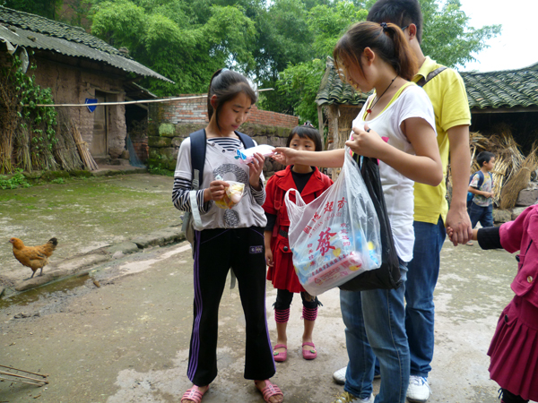 根据不同年龄、不同年级和家庭远近等因素考虑,我们从30位小员工中选择了10位小朋友进行了家访。下课后,队员们收拾好行礼,带好礼品跟着小朋友们出发了。听说要送他们回家,小朋友都非常高兴,迫不及待地带我们到家。一路上,有说有笑,经过一条条泥泞、弯曲的小路,约步行半小时后,队员们陆续到达了孩子们的家,并送上准备好的小礼品。家长们见到队员们亲自送孩子回家,都感动不已,非常客气地接待,并执意挽留吃中午饭,但队员们都一一委婉拒绝。队员们与家长们就子女教育、家庭收入和农村义务教育等进行了亲切交流。家长们普遍感谢党和国家的好政策,实行免费义务教育大大减轻了他们的经济负担。他们都希望自己的孩子受到良好的教育,但由于自身文化水平普遍较低,平时有都忙于农活,其中5个员工还是留守儿童,由爷爷奶奶抚养照顾,这些原因都导致员工在家的学习积极性不高,家庭教育的质量很低。希望我们能多开展这样的活动。对于家长们的问题,队员们向他们解释说,政府非常重视教育,教育投入越来越大,政策越来越好,相信在不久的将来农村教育质量会越来越好。临走时,队员们纷纷表示在支教期间,定会竭尽全力提高孩子们的综合素质。以后将多到农村开展义务支教活动,回报社会,锻炼自己。并祝愿他们家庭幸福,生活越来越美好。