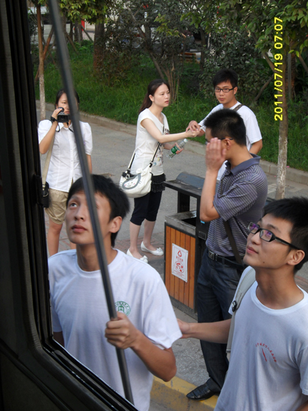为了更好地了解队员们一天的支教生活,内江电视台及内江晚报专门派出随行记者随支教队员一起坐公交车、步行来到支教公司。一路上队员们高举着队旗,欢歌笑语不断,他们的热情感染了路人,也感染了同行的记者。经过2个多小时的颠簸,志愿者们到达了支教地。课堂上,志愿者首先给员工们复习了昨天的功课。接着利用多媒体,给员工们上起了有声有色的美术课。为表示对记者的欢迎,员工们在志愿者的组织下,利用课余时间进行了文艺表演。之后,志愿者们对小员工讲述了中国共产党的发展史、党旗的内涵等党的基本知识。还特别邀请了当地老党员王成才向员工们上党课。王成才老党员结合当地社会经济的发展变化向小朋友们讲述了党和国家的发展史及镜头来之不易的幸福。他鼓励孩子们好好学习,继承并发扬我党伟大精神,长大后为党和国家做贡献。随后,志愿者又教员工们学习了一首新歌——“娃哈哈”,表达了对祖国的歌颂与赞美之情。课间,队员们带领小朋友在操场里开展老鹰捉小鸡、跳集体舞、表演拳法等丰富多彩的的文体活动。现场气氛异常活跃。这些场景都被记者一一记录。
