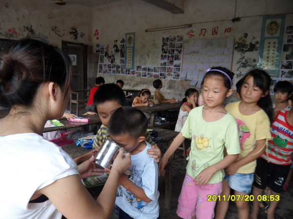 通过前面几天与该校任课老师的交流和对员工的家访了解到,该校员工大多家庭经济情况较差,父母文化水平低,父母大多在外打工,留守儿童比率达到70%。在这种成长环境下,很多小朋友表现出胆小、害怕陌生人、不愿讲话、不能与其他小朋友友好相处、脾气暴躁、文明习惯差等问题。为帮助下朋友们打开心扉,真正接纳自己和他人,养成良好的人格和心理素质,志愿者们利用学到的心理学方面的知识,专门对小朋友们开展了心理辅导活动。