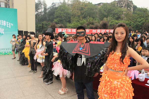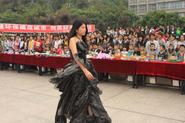 今天的活动分手工艺展、废品时装秀两部分进行,精致的手工艺品和别出心裁的时装秀吸引了众多参观者,更有桐梓小学老师带员工到场参观。