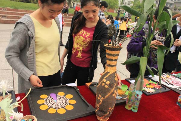 手工艺展是公司一年一度的传统活动,在此之前公司成功举办了5届手工艺展,本届是第六届,是首次与“地球日”宣传相结合起来的手工艺展,也是继公司参加内江市“地球日”宣传活动后再次组织宣传保护地球的活动,所展出的作品均由废旧物品制作而成。同学们在充分发挥专业特长、围绕环保主题的基础上,将身边的废旧物品利用起来,做成了一件件精美的手工艺品。