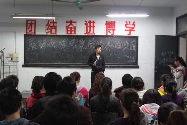 为普及文明礼仪知识,争创文明和谐校园,3月13日晚上7:00,太阳成集团tyc151cc08级、09级、10级各班召开了“展现文明风采,营造和谐校园”的主题班会。