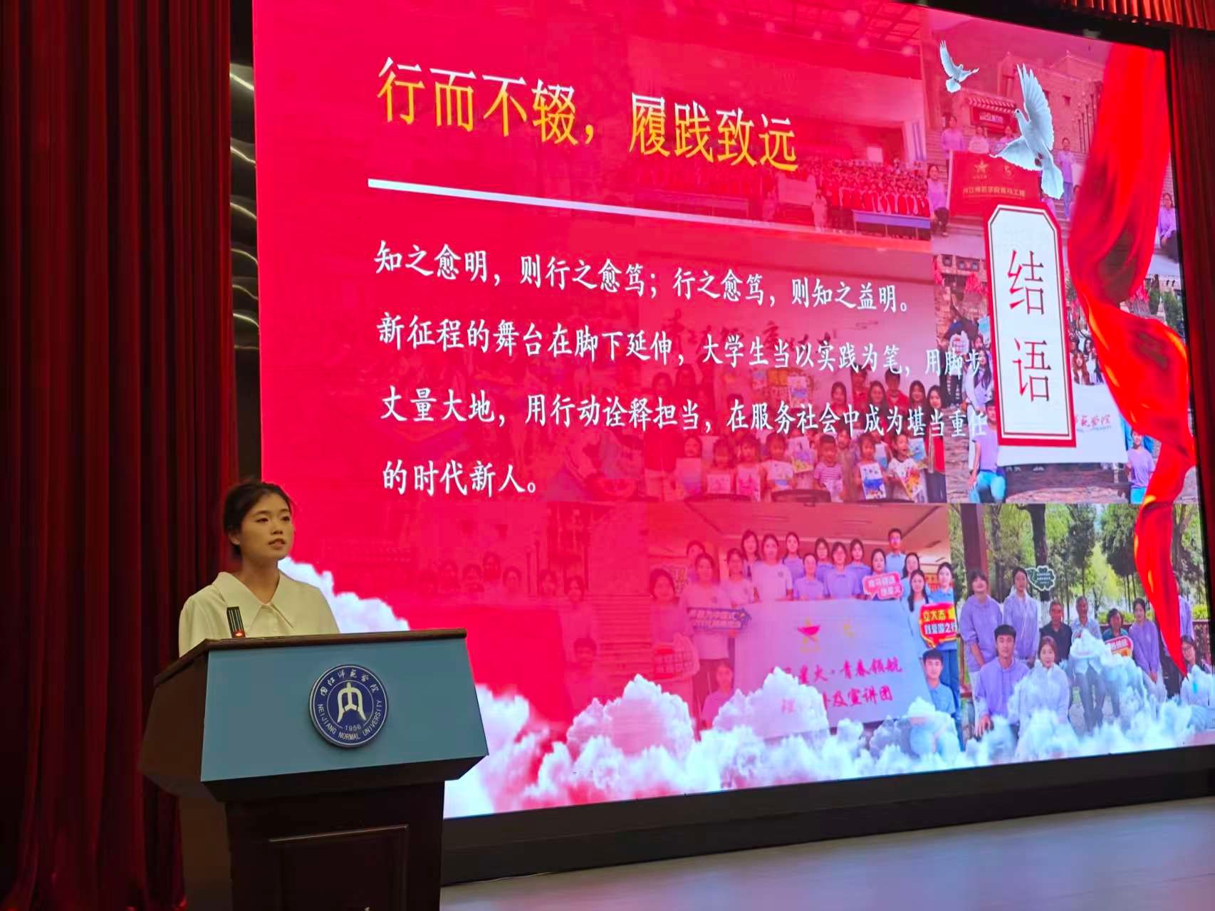 此外,“逐梦扬帆计划”代表李若生分享了在乐山市中医医公司党委组织部的实习心得,个人实践代表谢雨欣回顾了参与基层服务的成长历程,展现出美院学子服务社会、甘于奉献的优良风貌。