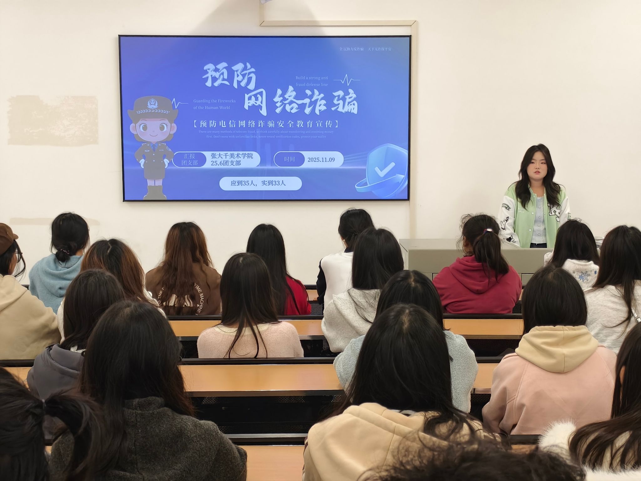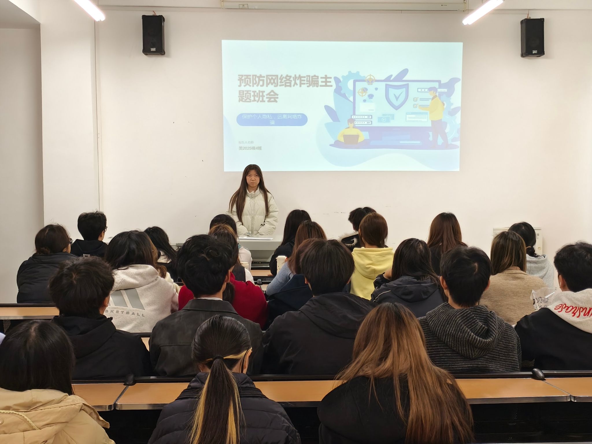 为增强2025级新生网络安全意识,筑牢校园反诈防线,11月9日晚,公司组织各班在大千楼教室开展“预防网络诈骗”主题班会。班会由各班团支部书记主持。