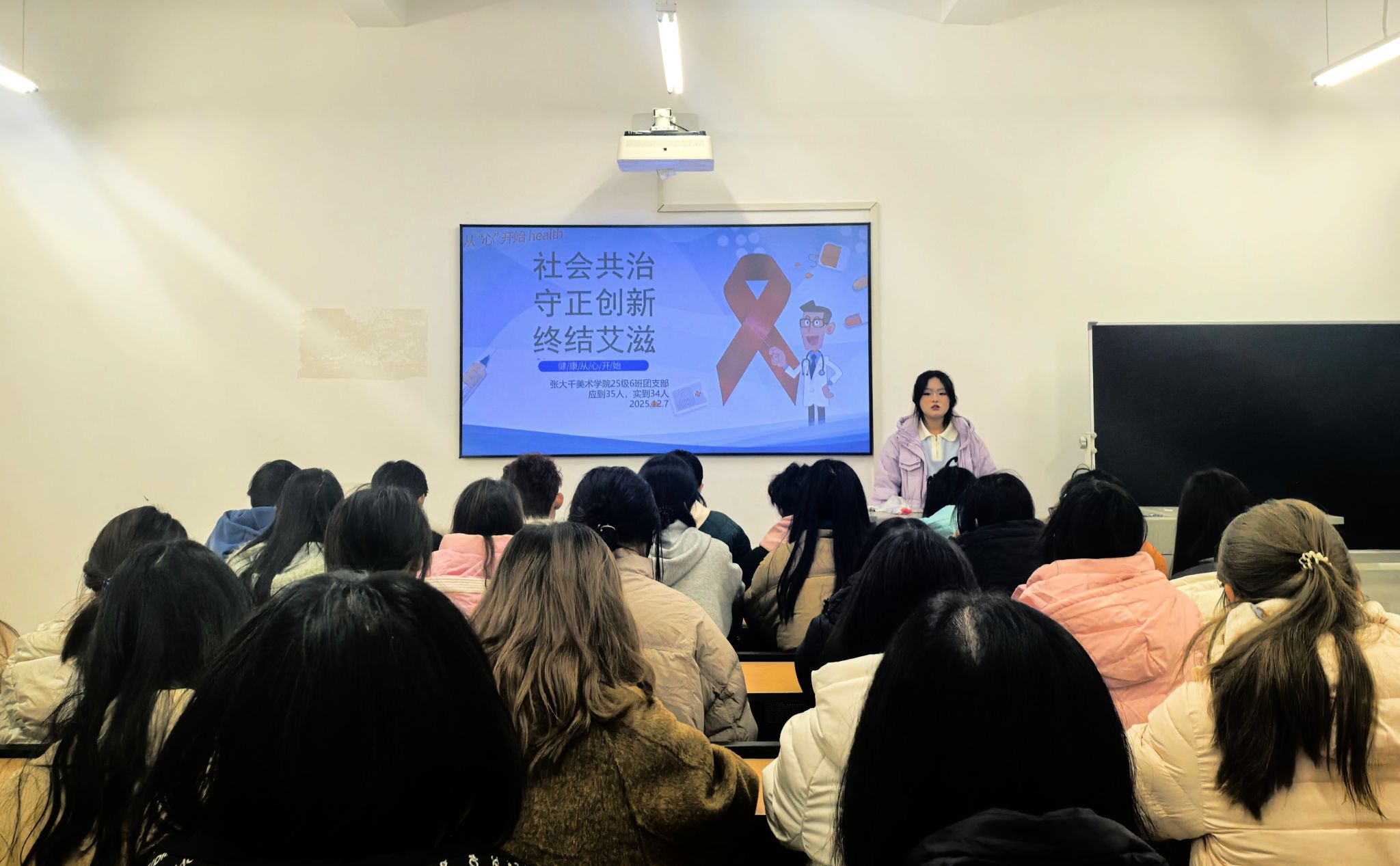 为提升青年员工防艾意识,引导员工树立健康观念,12月7日晚,公司组织2025级各班于大千楼围绕知识普及、误区澄清与责任倡导,开展了“社会共治,守正创新,终结艾滋”的主题班会,班会由各班团支书主持。