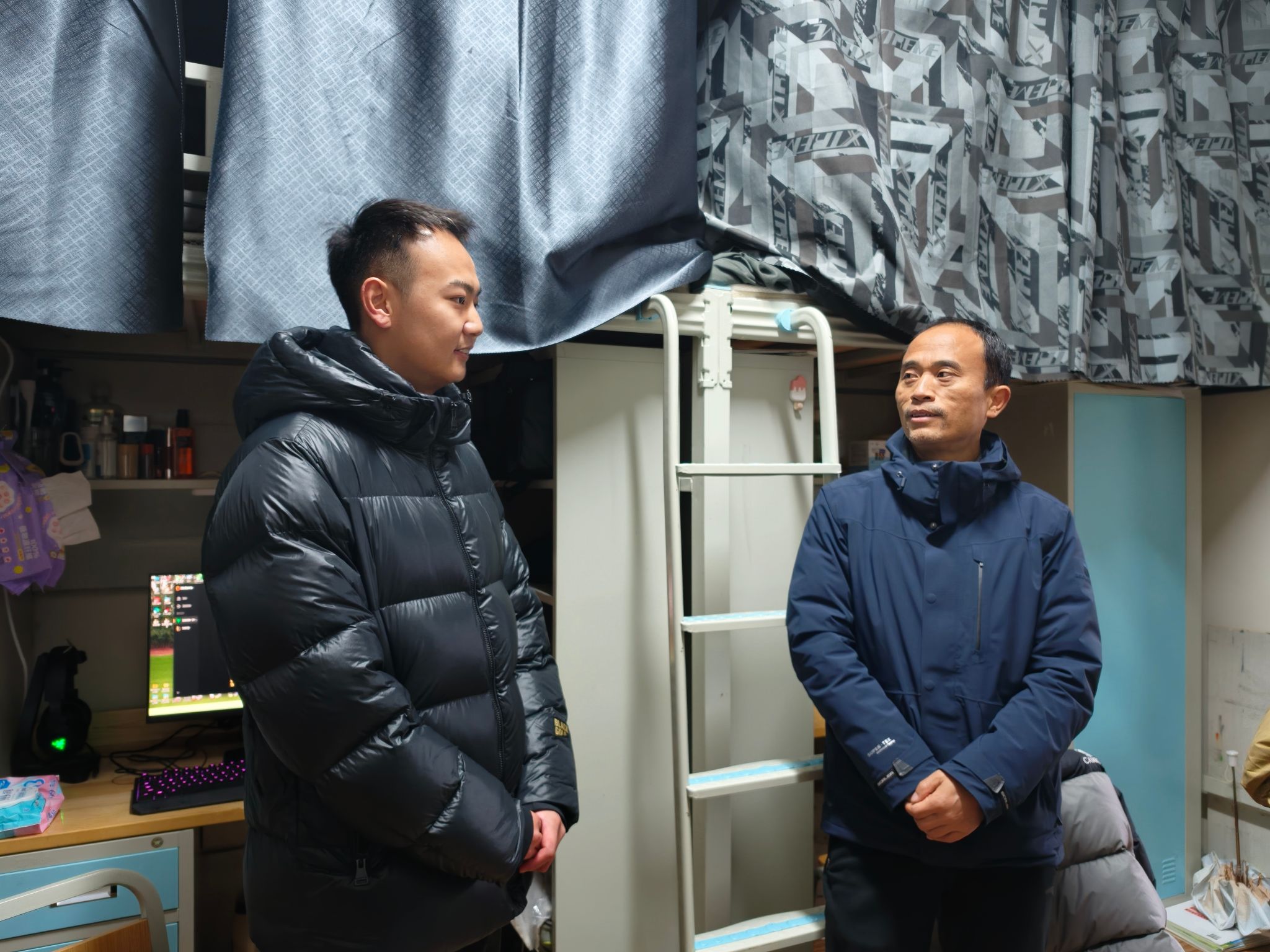 班会结束后,在班主任李铃陪同下,商老师走访大千苑18-2宿舍六楼,查看基础设施与居住环境,叮嘱同学们严守用电规定、防范消防隐患,注重宿舍卫生、养成良好生活习惯。