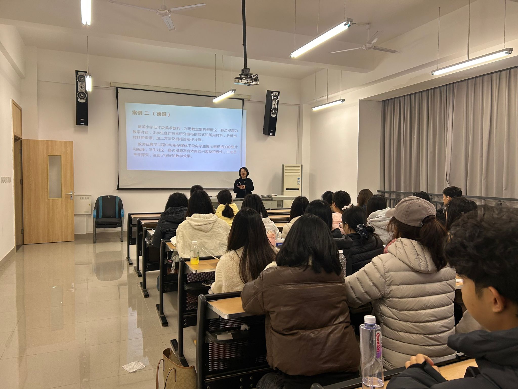 活动伊始,高登明副经理在A413教室随堂听取了张静老师讲授的《中学美术课程开发》课程,实地了解公费师范生的课堂学习状态与教学实况。随后,高经理与班级同学在B411专业教室进行座谈交流。他围绕“老员工活规划与专业发展”主题,结合公费师范生培养特点,对师范专业认证要求、职业发展路径及就业政策进行了细致解读。高登明副经理还以“老员工科研诚信与素养”为题作专题讲座,强调学术规范与职业道德对师范生成长的重要意义。最后,高登明副经理前往男生宿舍进行走访,深入了解员工的住宿条件与日常生活,叮嘱同学们营造安全、文明、和谐的宿舍环境。