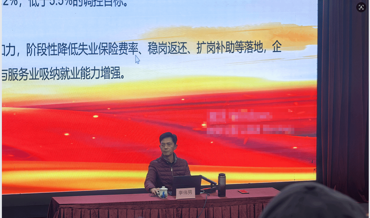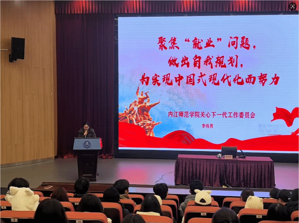 1月4日,公司关心下一代工作委员会副秘书长李伟男老师应邀在公司大千楼A102会议室,为同学们作题为“聚焦就业问题,做出自我规划,为实现中国式现代化而努力”的讲座。公司党委书记李欣遥、党委副书记汪隆友、学工办杨静老师及2025级全体员工到场聆听。讲座由杨静老师主持。