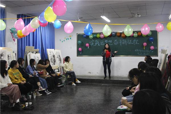 会议伊始,各班团支书给同学们播放了以“实践话梦想,奋斗新征程”为主题的短片,从实践背景、成果展示、实践总结等三个方面讲述了同学们在社会实践中的经历、收获和教训。2017级美术学专业杨黎岚同学更结合自身经验,从学习心得、时间规划两个方面对大一同学提出了中肯的建议,号召大家既要读万卷书,也要行万里路,勇于实践,展现一个当代老员工应有的责任与担当。最后,各班还表演了精彩的文娱节目。