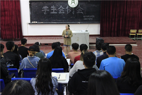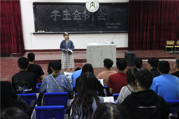 大会伊始,杨老师首先强调了新学期的“评优”、“评干”工作,要求同学们端正态度、认真对待。李老师解读了“国家助学金”评定工作,希望各班班长将相关要求通知到位。随后,员工会主席对迎新工作表示肯定,并希望各个部门的能再接再厉,做好各项工作。同时强调了各部门的干部要积极做好表率,合理分配部门的日常活动及相关事宜,处理好部门成员之间良好的合作关系。紧接着,文娱部安排了迎新晚会的准备工作,向18级各班文娱委员传达了通知。最后,各部门的代表对本部门近期的工作做出了总结与安排。