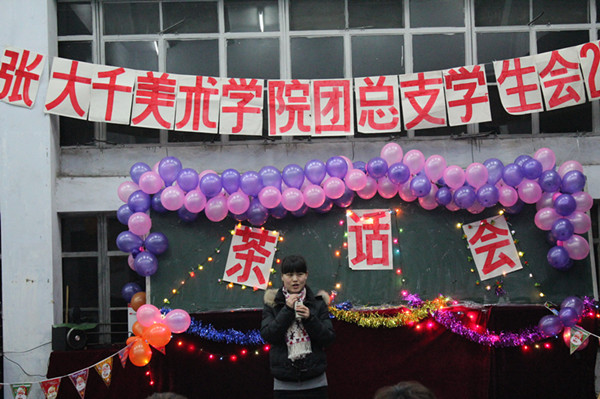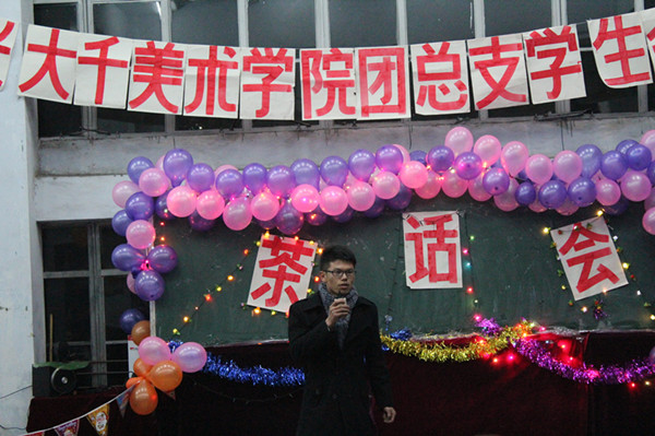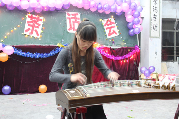 总结结束后,各部门还即兴表演了形式多样、内容丰富的节目和娱乐活动,如舞蹈《梨园春晓》,古筝表演《秧歌情》,歌曲串烧,诗歌朗诵等。其中,学习部干事罗洋独唱《爱有路可退》,其唱功不俗,引起了现场同学的一阵阵喝彩之声;纪检部的冷笑话,冷爆了全场;老师与同学们互动的节目更使茶话会推向了高潮。